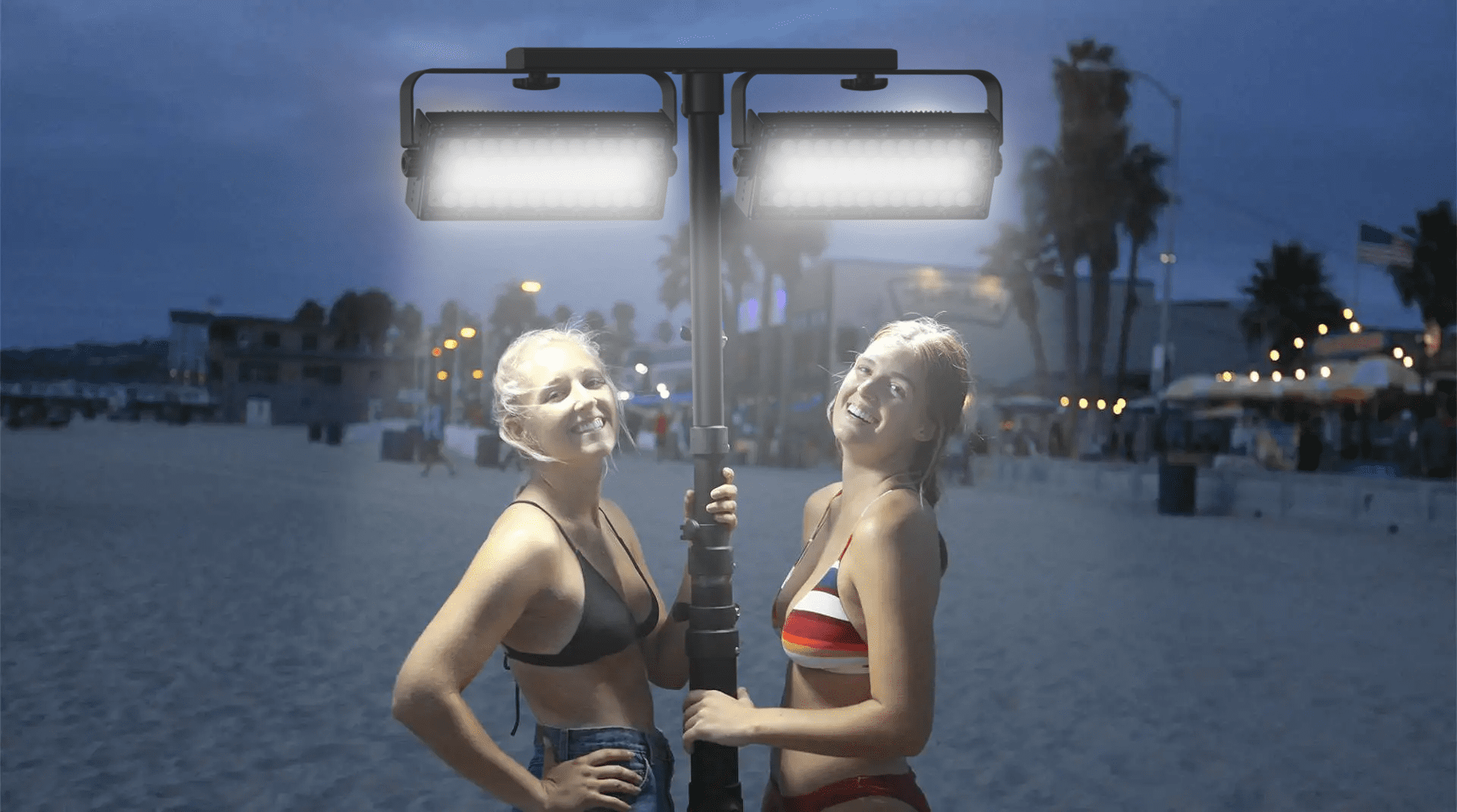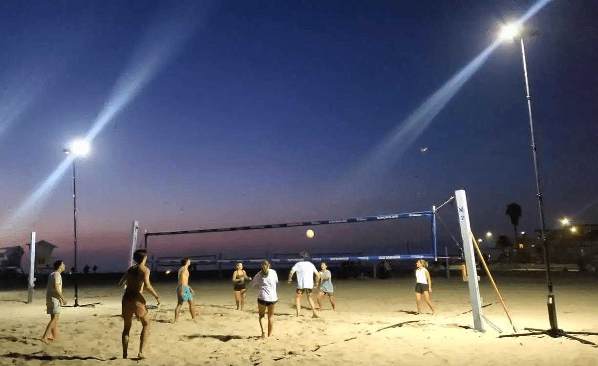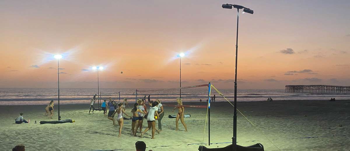 The Apollo S by Eversun is the ultimate lighting solution for beach volleyball enthusiasts. Designed to extend your playtime on the beach into the evening, this ultra-portable and powerful light tower system illuminates the court with 40,000 lumens from two LED lamps. Its weather-resistant construction can withstand sandy, coastal environments and gusts of wind up to 40 mph. With two Apollo S towers per package, you can effortlessly light up your entire beach volleyball court. Setup is a breeze with the telescoping mast that extends up to 20 feet, giving you professional-level lighting in seconds. Add on free-standing quadpod legs for stability on uneven sand and ensure all-night action with optional extra battery packs.